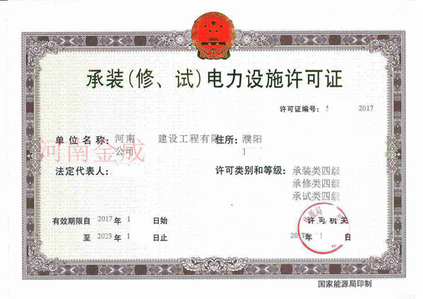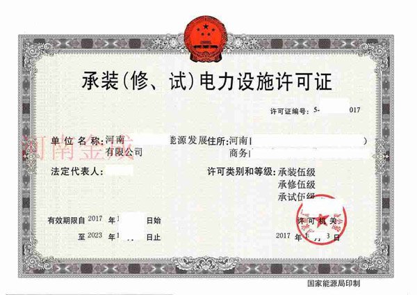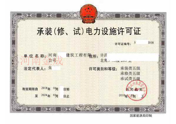 • 承裝(修、試)電力設施許可證